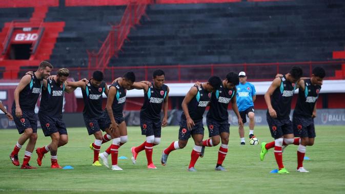 Para pemain PSM Makassar berlatih di pinggir pantai Kuta, Bali.