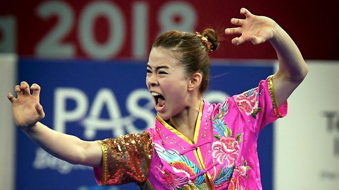 Cheong tampil apik ketika bertanding di nomor nanquan putri Asian Games 2018, di JIEXPO Kemayoran, Minggu (19/8/2018). Dia menempati peringkat kedua karena meraih nilai 9,71.