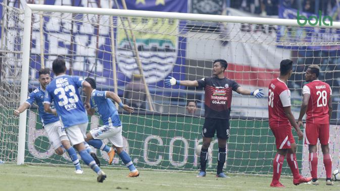 Bola.com, Bandung - Arema FC melakukan perubahan di sektor penjaga gawang saat melawan Persib Bandung di Stadion Gelora Lautan Api, Gedebage, Bandung, Kamis (13/9/2018). Kiper utama Srdan Ostojic dicadangkan karena cedera pada jari tangan sehingga Utam Rusdiana yang dipercaya jadi kiper utama.