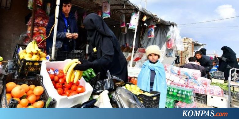 AL-HOL, KOMPAS.com - Buah-buahan segar, minuman spda, dan pewarna rambut memenuhi sebuah pasar di Al-Hol, sebuah kamp pengungsian di Suriah.