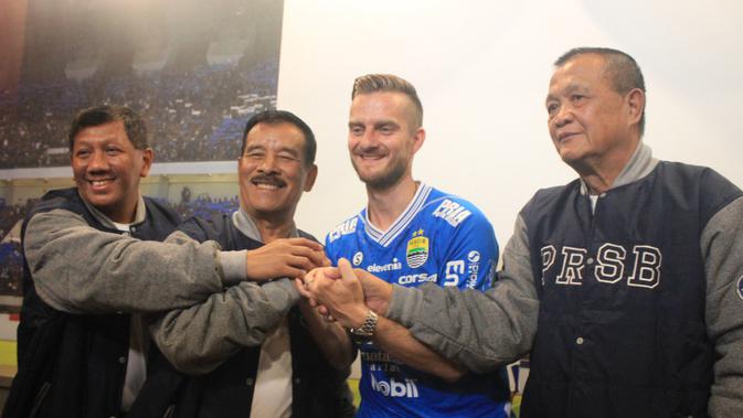 Bola.com, Bandung - Manajemen Persib Bandung memperkenalkan pemain asing baru asal Slovenia, Rene Mihelic, di Graha Persib, Jalan Sulanjana, Bandung, Selasa (7/5/2019). Rene Mihelic merupakan rekrutan terakhir untuk Persib menghadapi Liga 1 2019.