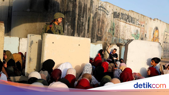 Yerusalem detikNews - Tentara Israel bersiaga di sekitar warga Palestina yang tengah melaksanakan salat Jumat di area sekitar Masjid Al-Aqsa. Seperti apa penampakannya?