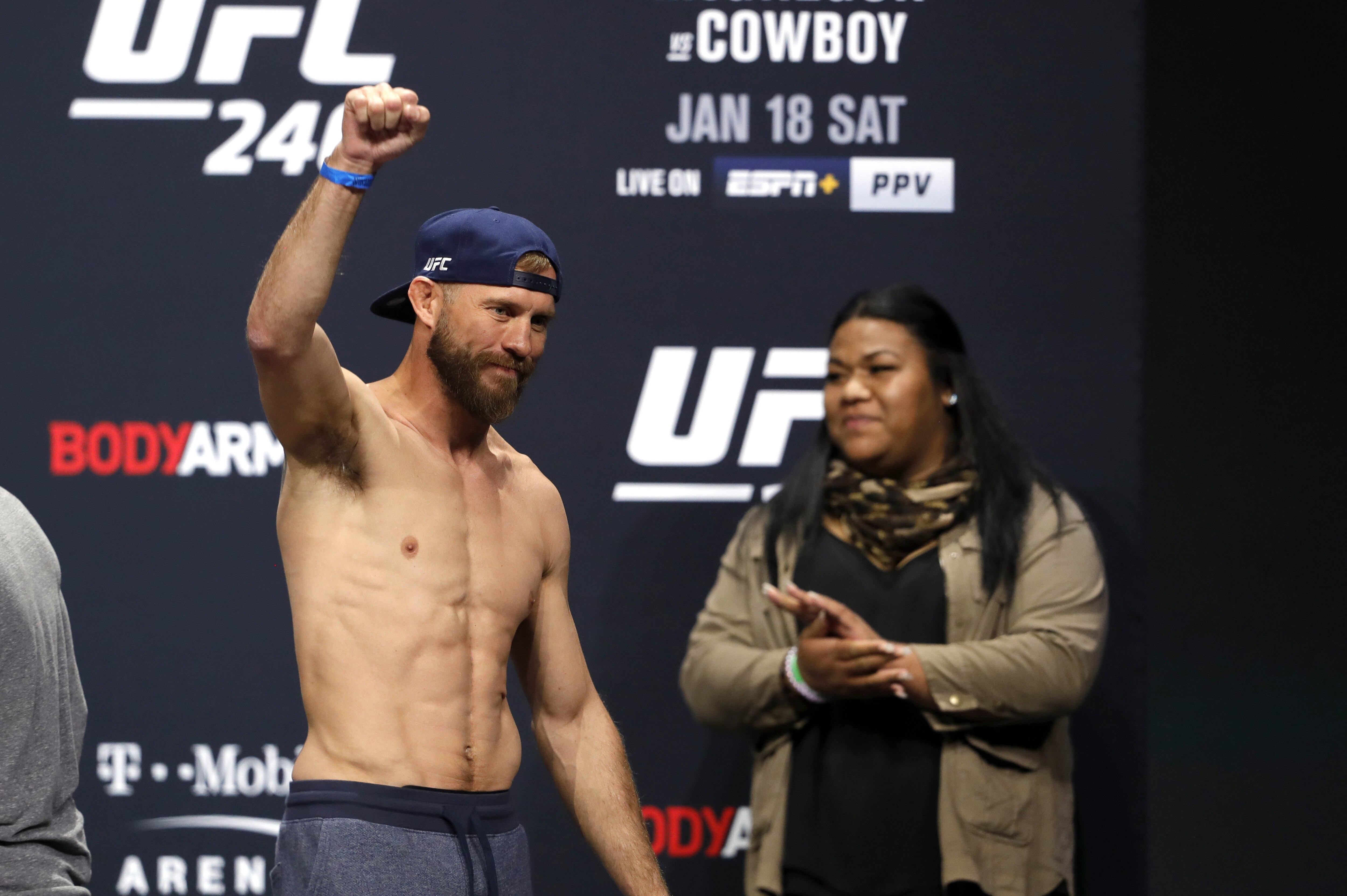 Tapasa made an appearance at the UFC 246 weigh-in Wednesday, standing between main event fighters Conor McGregor and Donald "Cowboy" Cerrone as they squared off.